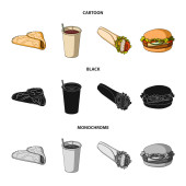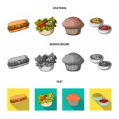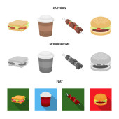 Szybko, posiłek, jedzenie i inne ikony sieci web kreskówki, płaskie, styl monochromatyczny. Naleśniki, mąki, produkty, ikony w zestaw kolekcji.