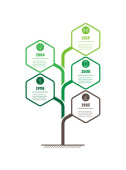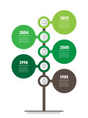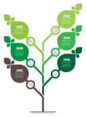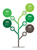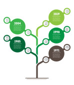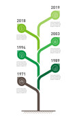 Pionowej osi czasu infografiki w odcieniach zieleni na białym tle