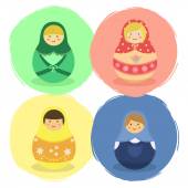 Matryoshka wektor tradycyjnych rosyjski gniazdowania lalki Zabawka z ręcznie ornament rysunek wzór z dziecko twarzy i babushka kobieta z pamiątkami ilustracja.