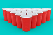 Beer Pong Tournament ulotki jako czerwone kubki i ping pong piłkę