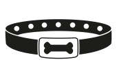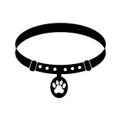 Czarno-biały kołnierz pieścić sylwetka. Prosty zaopatrzenia dla zwierząt domowych. Kot i pies ilustracja wektorowa o tematyce opieki dla ikony, naklejki, poprawki, etykieta, odznaka, certyfikat lub prezent karty dekoracji