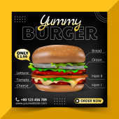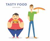 Yummy burger koncepcja płaskie wektor ilustracja śmieszne chłopiec i dziewczynka jedzenie hamburgerów