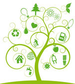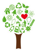 Drzewa wykonane z eco przyjazny ikony, pomyśl zielone pojęcie. Ilustracja pomoc środowiska obejmuje recykling symbol, ludzką ręką i turbiny wiatrowej Młyn. Eps10 wektor