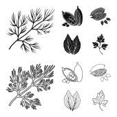 Zdjęcie "Koperek, ziarno kakaowe, bazylia. Zioła i przyprawy zestaw kolekcji ikon w kreskówce, czarny styl wektor symbol ilustracji w sieci web." może być wykorzystywane do celów osobistych i komercyjnych zgodnie z warunkami zakupionej licencji Royalty-free. Obraz jest dostępny do pobrania w jakości wysokiej rozdzielczości do 5760x3840.