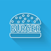 Burger Flat Line Art Design. Wektor ilustracja na białym tle na niebieskim tle, Fast food restauracji Productions.