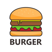 Zdjęcie "Burger Flat Line Art Design. Wektor ilustracja na białym tle na niebieskim tle, Fast food restauracji Productions." może być wykorzystywane do celów osobistych i komercyjnych zgodnie z warunkami zakupionej licencji Royalty-free. Obraz jest dostępny do pobrania w jakości wysokiej rozdzielczości do 5760x3840.