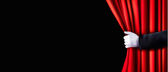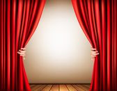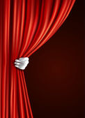 Tło z czerwoną aksamitną zasłoną i ręką. Ilustracja wektora