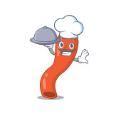 Szef kuchni z żywności bagietki maskotka stylu cartoon
