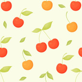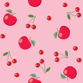 czerwone jabłka i wiśnie na beżowym tle - wektor wzór