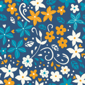 Wzór wykonany z kwiatów i liści w doodle stylu. Element projektu.