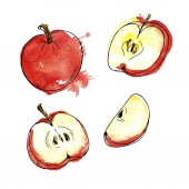 Zdjęcie "Zestaw świeżych jabłek i plasterki jabłka na białym tle na biały backgrond rysowane przez atramentu. Ręcznie rysowane wektor ilustracja." może być wykorzystywane do celów osobistych i komercyjnych zgodnie z warunkami zakupionej licencji Royalty-free. Obraz jest dostępny do pobrania w jakości wysokiej rozdzielczości do 5760x3840.