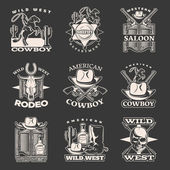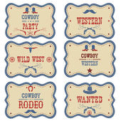 Vintage Western etykiety i identyfikatory zestawu. Edytowalne ilustracja wektorowa Eps10 w stylu retro drzeworyt z przezroczystością.