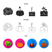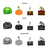 Kapusta, dyni, cebula, buriak. W czarne, płaskie, monochromatyczne styl wektor symbol czas ilustracja web roślin kolekcja zestaw ikon.
