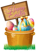 szczęśliwe Wielkanoc pozdrowienia z kosz pełen jaj