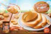 Masło orzechowe rozłożone z tostami i masłem nóż 3d ilustracji, tło bokeh
