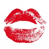 Odcisk kobieta usta - impress pocałunek z czerwona szminka