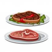 Soczyste mięso kromka na białym tle. Wirydarz-do góry ilustracja kreskówka wektor.