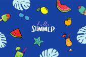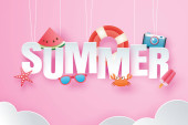 Zdjęcie "Witam lato z papieru wyciąć symbol ikonę tło plaża wakacje. Styl sztuki i rzemiosła. Wykorzystanie do banner, plakat, karty, cover, naklejki, odznaki, ilustracja projektu." może być wykorzystywane do celów osobistych i komercyjnych zgodnie z warunkami zakupionej licencji Royalty-free. Obraz jest dostępny do pobrania w jakości wysokiej rozdzielczości do 5760x3840.