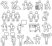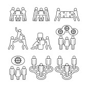 Zestaw ikon cienka linia biznesmen. Różne akcje biznesmen zarys zestaw. Wektor.