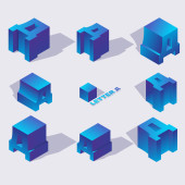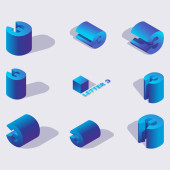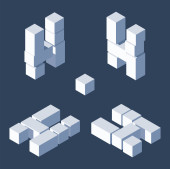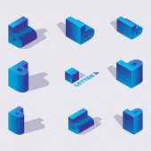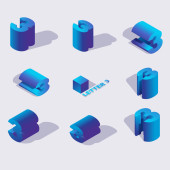 Zniszczyć bloki litery d w różnych foreshortening. Izometryczny widoki, dobra do pisania i napis. Kostka 3d cegły