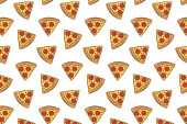 Wzór w stylu doodle z obrazu pociętego na plasterki pizzy. Tło wektor.