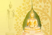 posąg Buddy w starożytnych maswerk i kaligraficzne element z ramą, ważny dzień Buddyjski koncepcji, ilustracji wektorowych