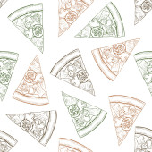 Wzór w stylu doodle z obrazu pociętego na plasterki pizzy. Tło wektor.