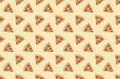 Wzór w stylu doodle z obrazu pociętego na plasterki pizzy. Tło wektor.