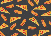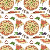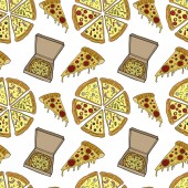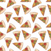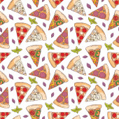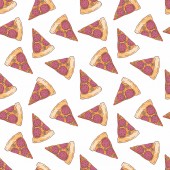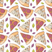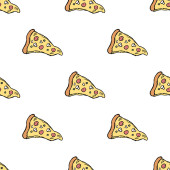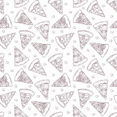 Wzór w stylu doodle z obrazu pociętego na plasterki pizzy. Tło wektor.