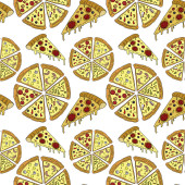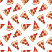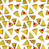 Wzór w stylu doodle z obrazu pociętego na plasterki pizzy. Tło wektor.