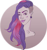 Portret młodej kobiety z piercing. Ręcznie rysowane wektor ilustracja.
