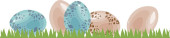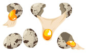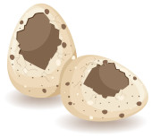 Pół gotowane przepiórczych jaj i cały brązowy jajko na białym tle