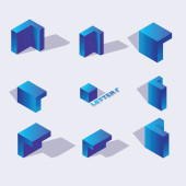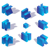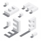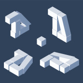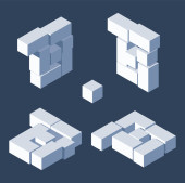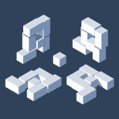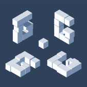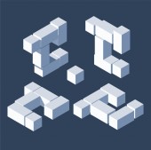 Izometryczne litery H w varions widok. Wykonane z bloków 3d i kostki