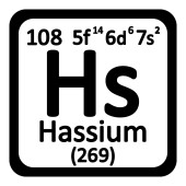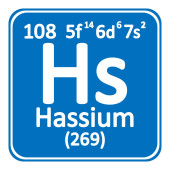Periodic table element ikony: hassium na białym tle. Ilustracja wektorowa.