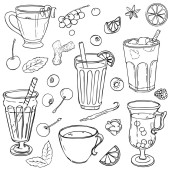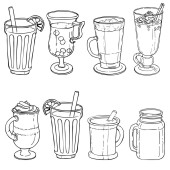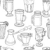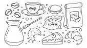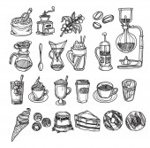 Różne rodzaje kawy w pucharach. Kawy tła. Wektor zarys