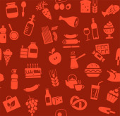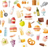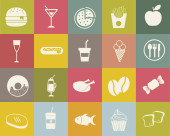 Żywności, ikony, sklep spożywczy, ołówek cieniowanie, kolorowe, wektor. Jedzenie i napoje, produkcja i sprzedaż. Kolorowe ikony kwadratowych z białym wzorem. Symulacja cieniowanie. Wektor clipart.