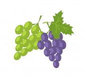 Winogrona clipartów kreskówka z winorośli i liści. Fioletowy macica.