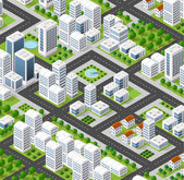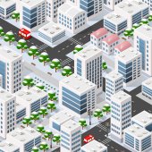 Kolorowy 3d izometryczny miasta domów i ulicy krajobrazu miejskiego wielobarwny