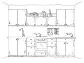 Ręcznie rysowane meble kuchenne. Ilustracja wektorowa w styl szkic