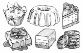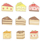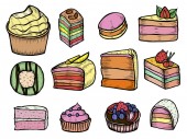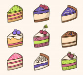 Kolorowe słodkie ciasta plastry kawałki zestaw wektor ilustracja.