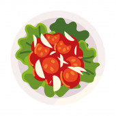 Ikony wyświetlone szpinaku zostawić, surowych pomidorów i plastry pomidora, ikona dla truskawek i szpinaku Sałatka