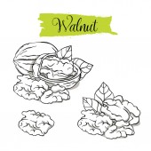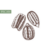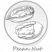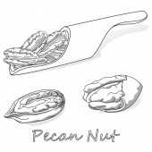 Styl szkic ręcznie rysowane Pecan zestaw. Pojedynczy, Grupa nasiona, pecan w grupie łupiny z orzechów. Nakrętka organiczny, wektor doodle ilustracje kolekcji na białym tle.