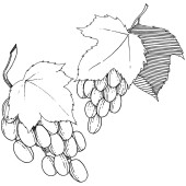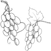 winogron zdrowe jedzenie w stylu przypominającym akwarele na białym tle. Oficjalna nazwa owocu: winogrona. dzikie owoce dla menu, tło, tekstury lub otoki wzór.
