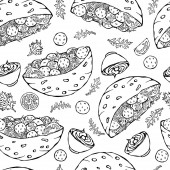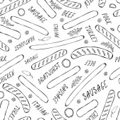 Hot Dog Bezszwowy Niekończący się Wzór. - Wiele składników. Restauracja lub Cafe Menu Tło. Kolekcja Fast Food. Realistyczne ręcznie rysowane wysokiej jakości ilustracji wektora. Styl bazgrołów
