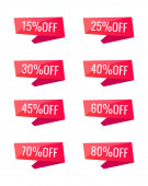 Zdjęcie "Sprzedaż Tagi 10, 15, 20, 25, 30, 40, 50, 60, 70 procent. Kolekcja rabat odznaki, znaczki, naklejki, etykiety. Promocji produktu. Wektor." może być wykorzystywane do celów osobistych i komercyjnych zgodnie z warunkami zakupionej licencji Royalty-free. Obraz jest dostępny do pobrania w jakości wysokiej rozdzielczości do 5760x3840.
