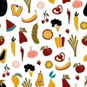 Wzór z warzywami Doodle wyciągnąć rękę na białym tle.
