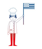 Chef man profesjonalnych, trzymając amerykański flaga święto pracy