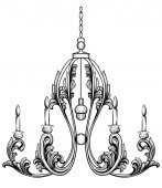 Barokowe klasyczny żyrandol. Luksusowy wystrój akcesoriów. Wektor ilustracja szkic linii sztuki