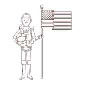 człowiek Górnik w kasku i wyposażenie gospodarstwa dzień pracy amerykańską flagę