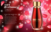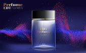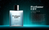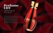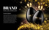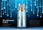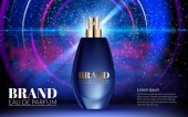 Perfumy projekt szkło Butelka Kosmetyki produkt reklama dla magazynu katalogu. Noc przestrzeni tła. Projekt plakatu wielkie pakiet za promowanie nowy szablon wektor zapach